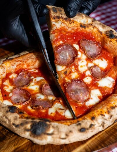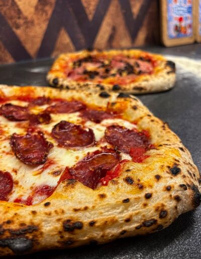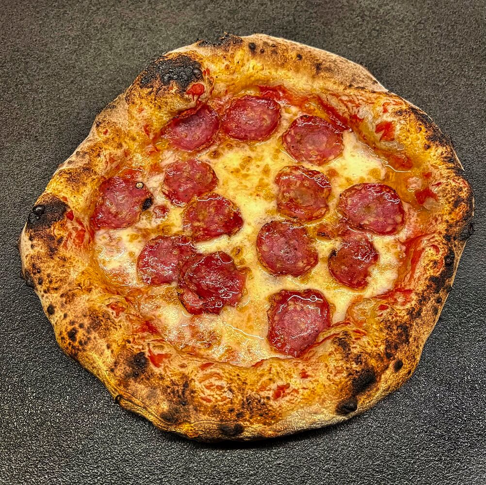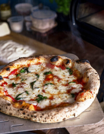 In meinem Steinofen backe ich Ihre Pizza in nur 90 Sekunden bei 450 Grad – so erhalten Sie ein perfektes Ergebnis mit knusprigem Boden und luftigem Rand.