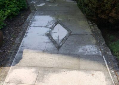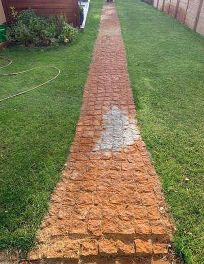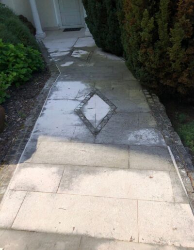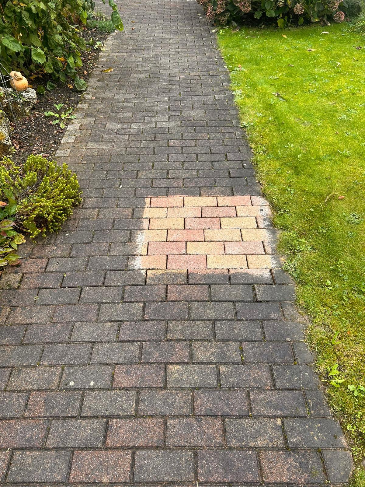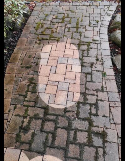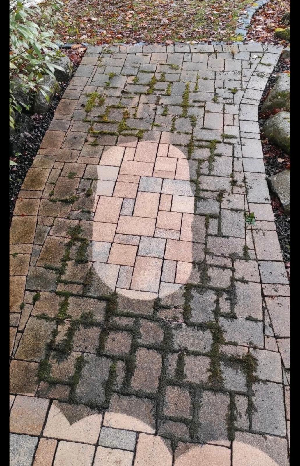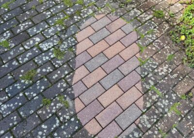 Wir entfernen Moos, Algen, Schmutz und Ablagerungen gründlich von Ihren Pflastersteinen.